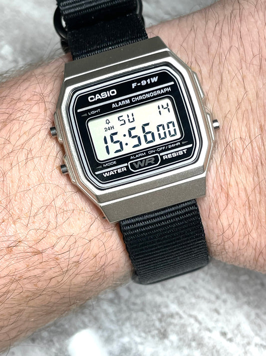 Silver and black Casio Watch on Bond Strap